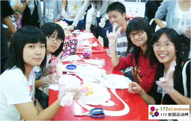 此次活动分为三个核心环节:铿锵四人组、班支部联谊、情侣组合。比赛时,主持人穿插讲解一些有关蛋糕的营养知识,结束后,参赛者把蛋糕收集起来分给观众,场内场外达到良好的互动效果。