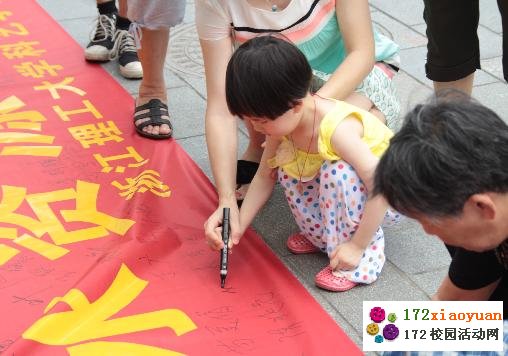 在中兴花园社区内,另一小分队的成员们正在向社区居民们发放宣传单及节水器,大力宣传节水措施,热心市民们还纷纷在横幅上签字,并表示会以实际行动支持保护水资源的活动。