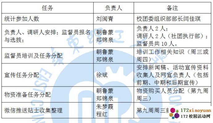 第九周【4.14-4.18】召开监督员会议,确定监督员具体分工,组织监督员培训,落实各项分工。