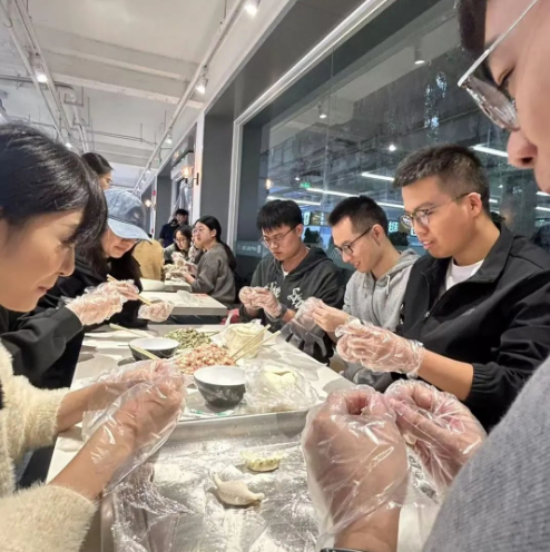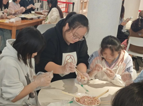 包饺子不仅是冬至的传统习俗,更成为了同学们相聚一堂、共同体验的乐趣所在。大家纷纷戴上手套,挑战包饺子的技巧,欢声笑语充满了整个场地。