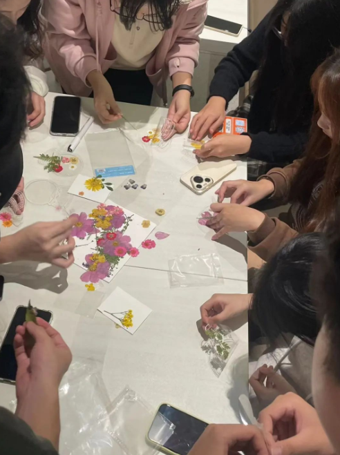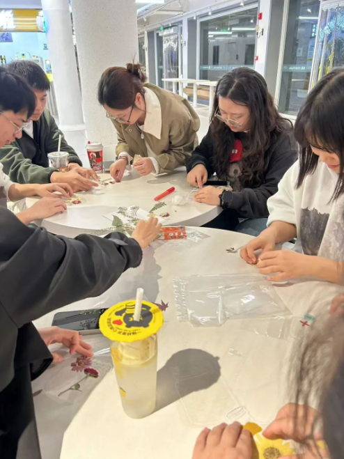 压花游戏给同学们提供了充分的审美空间,在体验压花技艺的同时,也激发了大家对传统艺术形式的兴趣。活动人员首先向大家发放压花材料,通过亲手制作,大家不仅学到了这一传统技艺,还在其中找到了独特的艺术乐趣