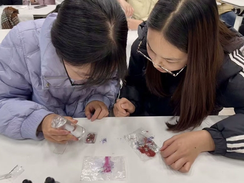 活动意在激发参与者的创造力和想象力。流沙摆件的制作没有固定模式,给了同学们充分的发挥空间。他们可以根据自己的喜好和创意,自由地选择颜色、形状和装饰材料。无论是充满梦幻色彩的童话风格,还是简约大气的现代风格,都能在同学们的巧手下诞生。这一过程让同学们能够打破常规思维,将内心深处的奇思妙想通过手中的摆件展现出来,在设计和制作中发现一个不一样的自己。