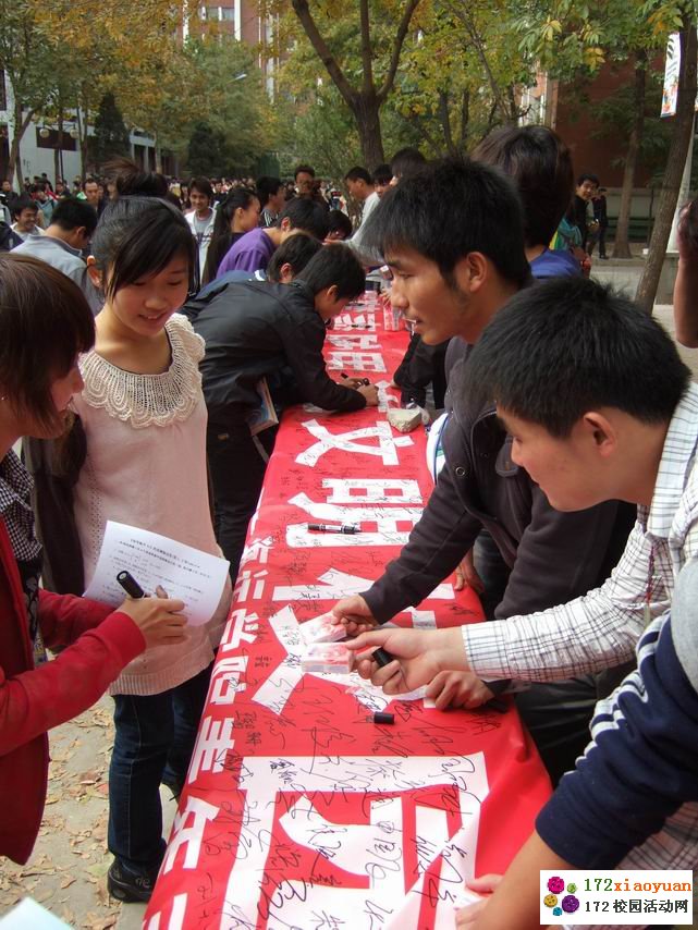 2009年10月26日,天津理工大学海运学院青年志愿者协会在校本部荟贤堂前举行了“禁痰防甲流,文明校园行”大型签名活动。