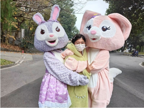 在“爱的传递”拥抱活动中,许多同学们为憨厚可爱的玩偶志愿者们驻足。同学们与玩偶志愿者们的拥抱互动中,脸上洋溢着欢乐和满足。冬日寒冷,一个拥抱足以温暖一天。