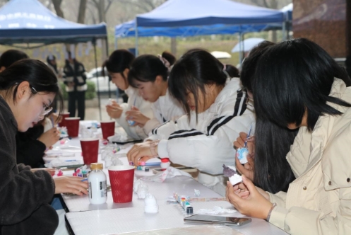 12月10日,各种各样的游戏在砂子坳校区总理楼前坪开始。“涂色石膏娃娃”现场,同学们以巧妙的构思和精心的制作,让原本平淡无奇的石膏娃娃焕发出新的生命力和观赏价值,在动脑动手中体验创造的乐趣,缓解学习压力;“看谁先笑、武起群英”游戏中,同学们互动交流,学会在生活中寻找压力的释放口;“解忧小屋”为有烦恼的同学们提供多种多样解决办法,使他们感到温暖,被需要,增加自信心,对未来充满希望。同时书法协会的成员为每位参与的同学送上多彩的心情卡片,卡片内容丰富,以文字传递温情,引导同学们勇敢面对困难,积极向上生活。集齐所有心情卡片的同学还能参与抽奖活动,有机会获得由心援社准备的精心小礼品,增添了活动的趣味性和参与感。
