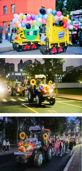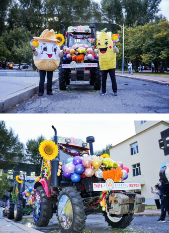 巡游环节气氛热烈,“黑土华丰号”主题花车以东农自主培育的大豆、水稻、小麦、果蔬、花卉为展示元素,寓意“大地丰华,粮安天下”,在后稷园周围形成了一道流动的科技风景线,吸引了众多师生驻足观看、拍照留念。其中一辆无人驾驶的花车尤为亮眼,这是由我校工程学院荣获“挑战杯”全国大学生课外学术科技作品竞赛省级一等奖的作品改装而成,播前垄台装备采用模块化设计,实现全流程自主作业,呈现了智慧农业装备智能化发展的新路径与实践价值,彰显了我校新农科创新实践育人的成果。