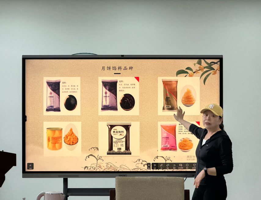 体育教学部的“烘焙达人”刘莹老师首先为大家详细介绍了制作冰皮月饼的步骤和方法,并做了演示。随后,教职工们纷纷戴上手套,开始了月饼制作之旅——揉面团、包馅料、压模成型,不一会儿,一个个晶莹剔透、色彩斑斓的冰皮月饼便在大家的手中诞生了。