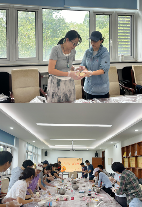 活动现场温馨且富有节日气息,各种制作月饼的材料一应俱全。教职工们暂时放下了繁忙的教学工作,积极参与到了DIY活动中。