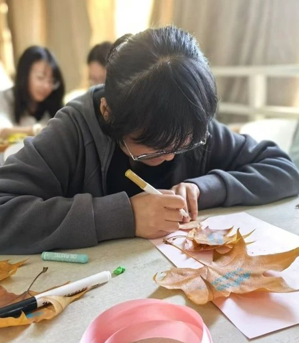 在秋日的校园里,小径上铺满了落叶,金黄的银杏和火红的枫叶是大自然的馈赠。2024年11月,南京审计大学沁园书院大学生社区服务中心举办了一场别具一格的“拾秋”活动。学生们在校园内收集秋叶,使用各种工具和材料,将寄托着美好愿望的秋叶制作成精美的艺术品,以此来创造属于自己的独特而永恒的秋天记忆。