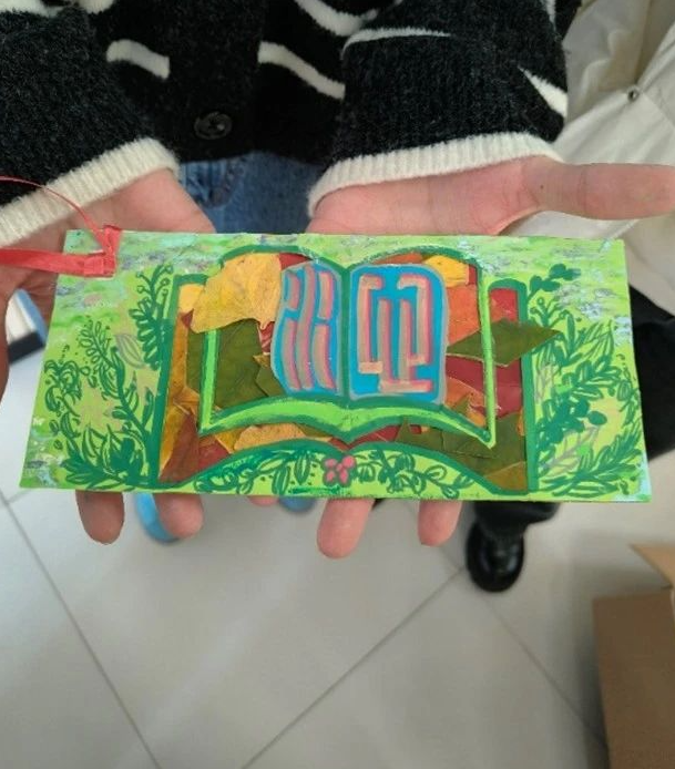 选择最喜欢的叶子,用彩笔在上面作画,或是用印章留下独特的印记。每一片叶子都是一张书签,它会藏在书里,为书本染上秋日的味道。我们记录下自己的阅读旅程,见证自己的成长,也与南审一起向未来走去。