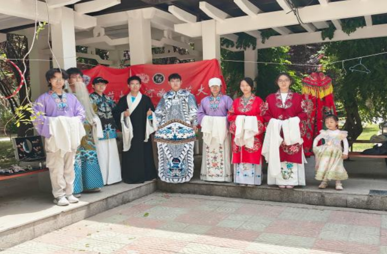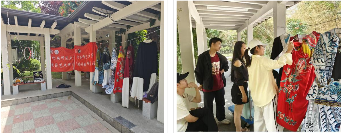 2025年5月18日上午,在阳光明媚的河南师范大学西区中心花园内,京昆艺术研习社与河南戏曲研习社联合举办了一场名为戏曲知多少的 活动 。现场陈列着一件件精美的戏曲服饰,通过给