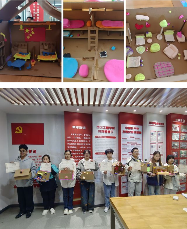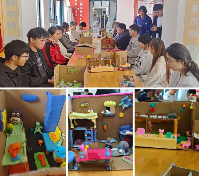活动中,色彩斑斓的粘土与形态各异的纸板整齐陈列,同学们以小组为单位,分工协作,有人专注捏制迷你家具与装饰摆件,有人则巧妙裁剪纸板,对宿舍主体精准的尺寸把控与巧妙的结构设计,尽显建工学子的专业素养。22日在A栋“一站式”学生社区“红灯塔育人”工作站进行了评比。评委们从创意构思、专业呈现、团队协作维度综合评分,最终选出优秀作品8个并在一站式学生社区进行展示。