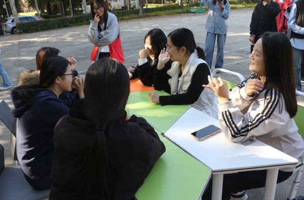 活动以“体验育人”为理念,精心规划了三大互动板块。在“逻辑推理角”,活动从单纯的智力竞技升华为沟通艺术的实践平台,学生通过角色代入学习共情与理解,在语言交锋中打磨思辨能力;“默契挑战区”环节,通过非语言协作与心灵共鸣,让团队成员在无声的默契中建立起深厚信任;而“趣味竞技场”则以轻松活泼的形式点燃全场热情,欢笑声与助威声交织回荡,学生之间情感距离在互动中悄然拉近。