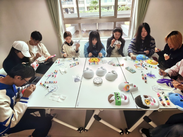 活动现场,同学们通过画笔在空白面具上自由创作,将内心情绪与思考转化为具象表达。姚书菊在引导中表示:“面具不仅是外在形象的象征,也可以是内心情感的载体,帮助我们表达未曾言说的自我。”参与同学在创作过程中逐渐打开心扉,实现情绪释放与自我觉察,活动现场氛围轻松而投入。