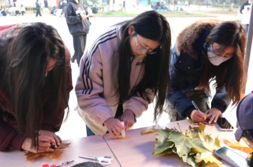 11月9日,山东科技大学文法学院在繁星广场开展拾叶叙意,生态守望 活动 ,以落叶为媒,通过艺术创作与文字表达,构建了一场兼具自然美学与人文温度的秋日画卷。 深秋时节,落叶