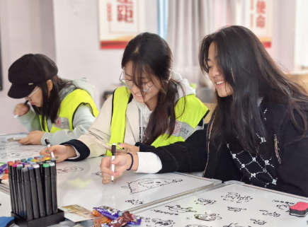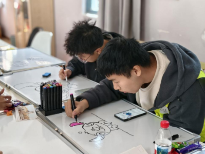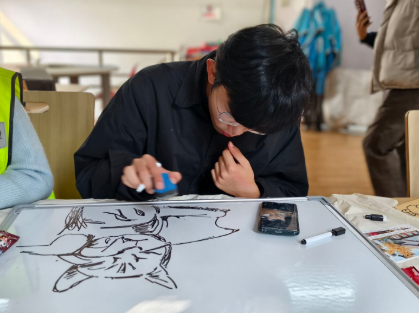 接着进入自由涂鸦阶段,自由涂鸦是活动的“情绪入口”。参与者可自主领取绘画材料,将内心的心事、未竟的理想通过画笔具象化呈现。针对绘画基础薄弱的学生,主办方特别准备临摹画册,确保每个人都能借助色彩与线条表达自我。现场,有同学用蓝色笔触勾勒出对未来的憧憬,也有同学以抽象图案释放学习压力,画笔成为跨越语言的“情绪桥梁”。