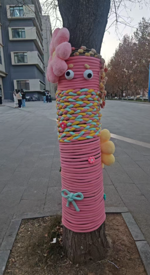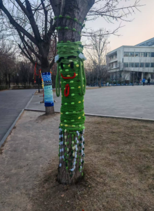 以艺术温暖校园,以劳动传递关怀。这个冬天,这些穿上了“暖衣”的树木,不仅承载着同学们的专业巧思与劳动热情,更传递出共建绿色校园、呵护自然生态的青春担当。