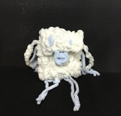 25网络与新媒体班的同学设计的 “小怪兽手提包” 荣获二等奖。她以日常实用为出发点,将可爱创意融入手工制作,通过钩织工艺赋予手提包灵动造型。白色基底搭配清新浅蓝色装饰,再加上趣味五官与 “触角” 配件,让作品既具备收纳功能,又能为日常穿搭增添童趣,完美诠释了 “手工让生活更美好” 的创作理念。