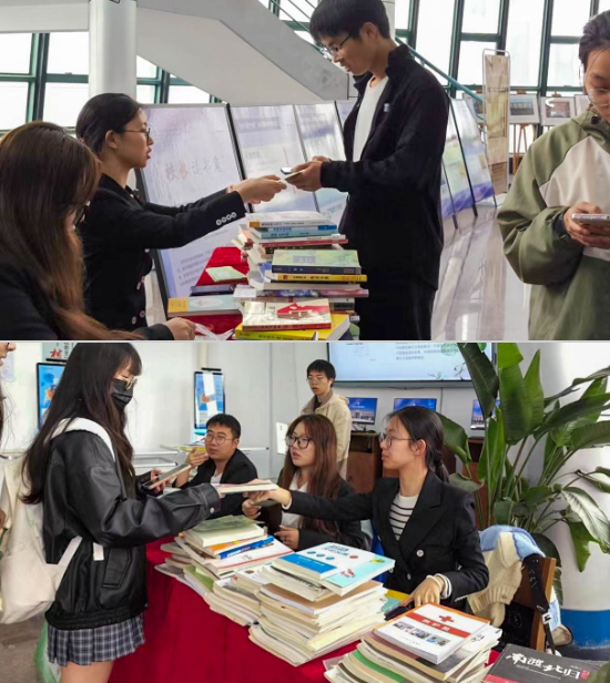 春光作序,万物和鸣,春日的校园里书香四溢,一场别开生面的图书交换活动如火如荼地展开。同学们纷纷将自己闲置的书籍送到指定地点,或是当场交给工作人员,并领取相应数量的读书券。随后,他们便可凭借读书券在现场兑换自己心仪的书籍,与好书邂逅,与知识相拥。此外,两个校区均在活动现场开设了与党史相关的答题活动,答题分数达到80分即可获得精美礼品一份。这不仅是一次书籍的交换,更是一次情感的传递、温暖的交融。