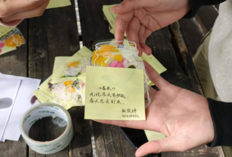 制作完成后,学生们还为自己的书签用心命名并撰写文案。“春日绮梦”书签的文案是“夹于书页,留住春日的万紫千红” ;“绿野仙踪”书签则配文“在书的世界里,开启绿野中的奇妙旅程” 。这些名字和文案,为书签赋予了更深层次的内涵。