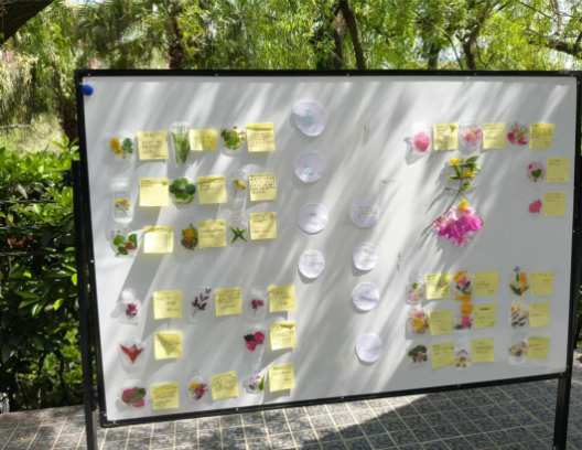其次,学生们纷纷拿出自己精心准备的花草材料。这些花草形态各异、色彩斑斓,有小巧精致的花瓣,有脉络清晰的叶片。大家相互分享、交流着自己带来的花草,讨论着如何搭配能让书签更美观。