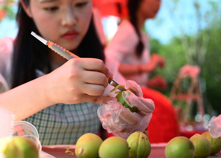 Q 弹的鱼丸、酥脆的海蛎饼、风味独特的炸糟鳗、古法腌制的雕梅果脯、醇厚回甘的陈年雕梅酒……每一道小吃都是“舌尖上的家乡”。在畲乡展台上,乌饭麻糍与金线莲冷泡茶吸引师生们前往品尝。从药材的挑选到研磨、从药膳的搭配到茶饮冲泡,同学深入其中,在药香中探寻畲药奥秘。