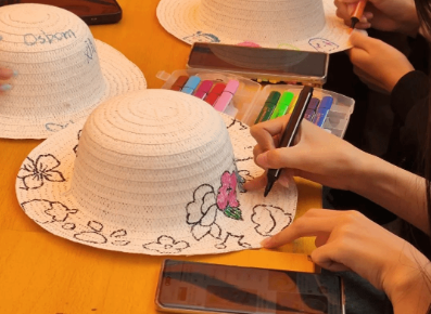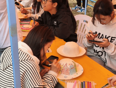 活动现场设置了多个特色摊位,不仅有草帽DIY、“雷锋集市”、“爱心捐赠角”,还设置了“投沙包”“单手翻纸杯”等趣味游戏环节。其中,草帽DIY活动吸引了众多同学参与,大家在草帽上创作,用色彩和创意诠释个性。同学们创作的个性草帽将捐赠给特殊儿童,将艺术创作转化为暖心关怀,通过“创意公益”形式践行雷锋服务人民、奉献社会的精神内核。