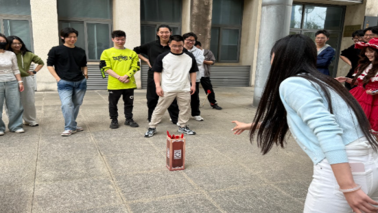 参赛者一共被分为6组,每组5人,游戏包括“你画我猜”、“沙包掷准”、“趣味投壶”、“盲人方阵”和“自画像互换寻找”这5个环节。在同学们的欢声笑语中,本次户外素质拓展活动顺利进行。整场活动以轻量趣味游戏为载体,以团队协作为核心,用低门槛、高趣味的互动形式,让同学们在春光里放松身心、增进情谊,在简单的协作挑战中凝聚团队力量,收获轻松快乐的春日记忆。